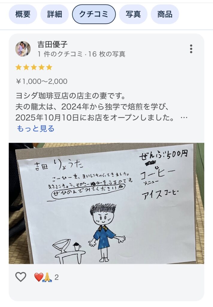 […] 店主の妻が1番乗りで口コミを書いた日の話はこちら […]