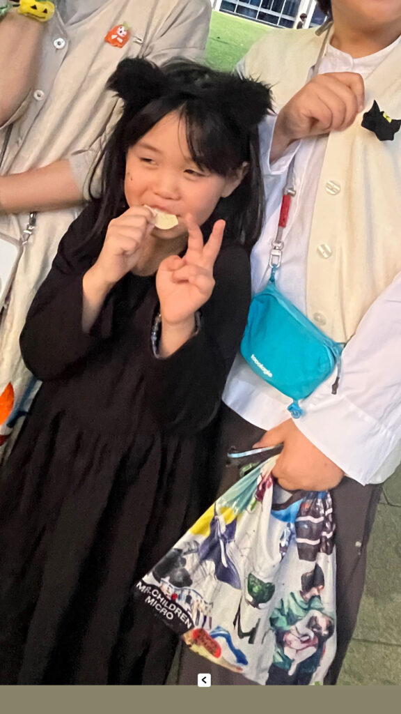 写真下の大きな目のコウモリは、しっかりワークショップを楽しんであかりが作ってきた作品。